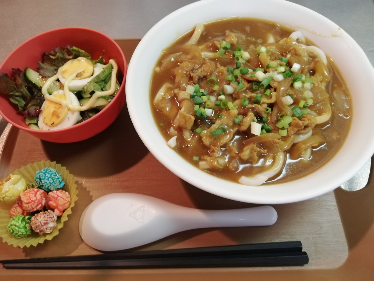 🌸カレーうどん(豚肉、たまねぎ、カレー粉、昆布だし、かつおだし、その他)