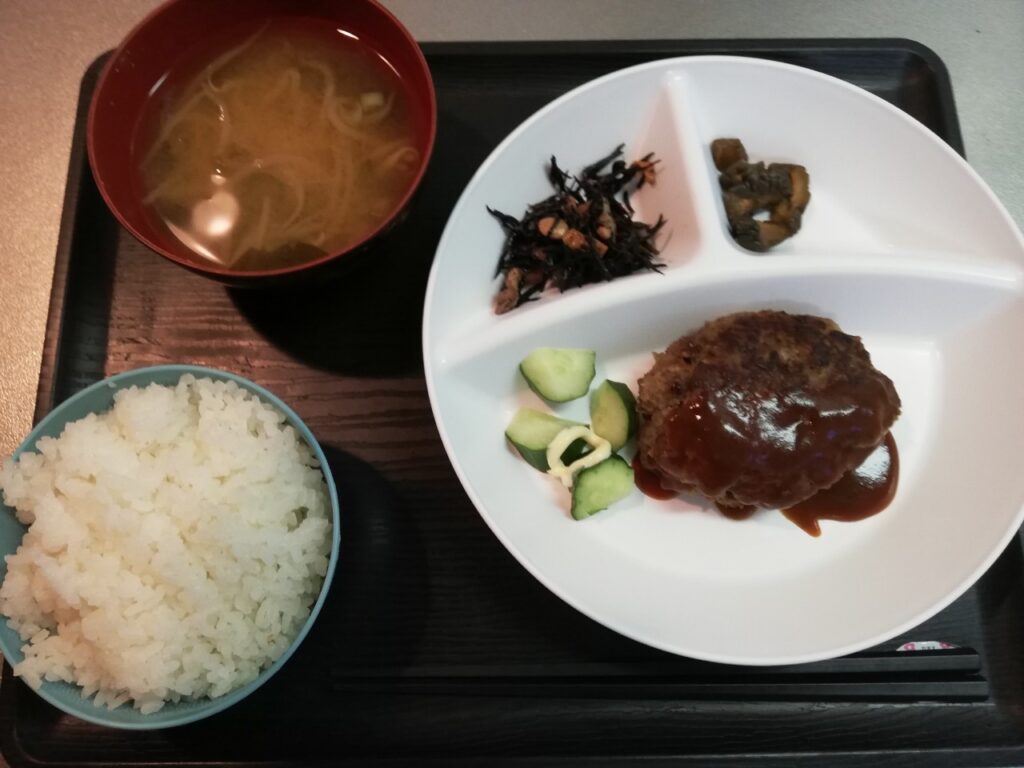 🌸ハンバーグ+きゅうマヨ(挽き肉、玉ねぎ、コショウ、塩、パン粉、牛乳、デミグラスソース)