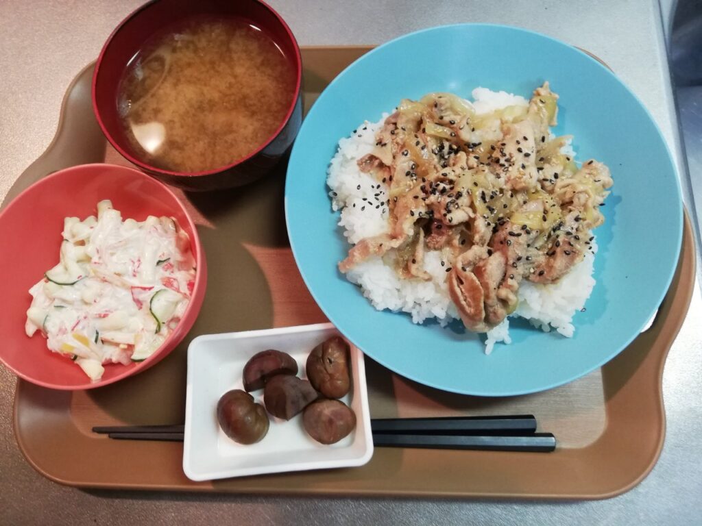 🌸豚丼(豚肉、玉ねぎ、黒・白ごま、醤油、砂糖、酒、その他)