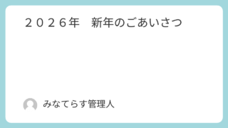 活動報告 2026年 新年のごあいさつ 🎍新年のごあいさつ🎍あけましておめでとうございます。旧年中は、就労継続支援B型事業所「みなてらす」の活動にご理解とご協力をいただき、誠にありがとうございました。昨年は、利用者の皆さんが日々の作業に前向きに取り組み、それぞれのペースで成長して... 2026.01.07 活動報告