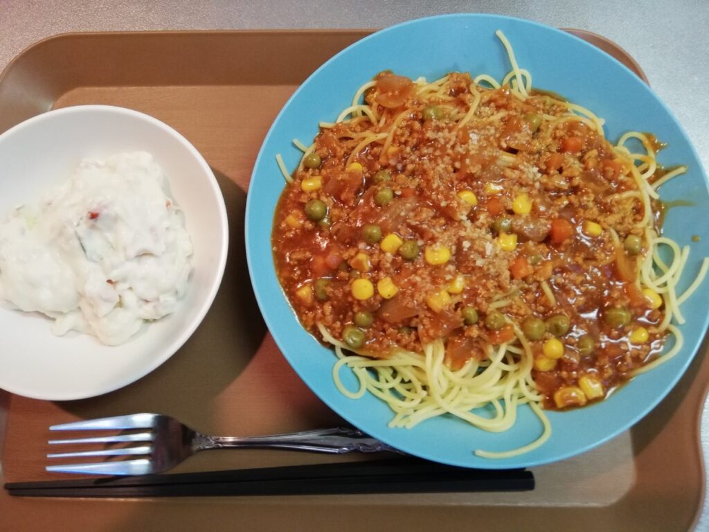 🌸ミートパスタ(挽肉、玉ねぎ、ミックスベジタブル)