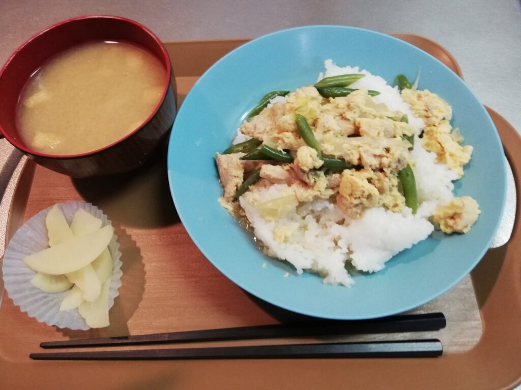 🌸親子丼(鶏肉、玉ねぎ、玉子、だし、酒、みりん、しょうゆ、その他)