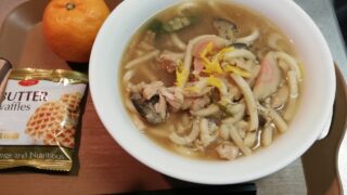 🌞12/15(月)温うどんランチ🌸温うどん(鶏肉、長ネギ、オクラ、たまご、油揚げ、なると、柚子、その他)🌸デザート(みかん、ワッフル)🌞12/16(火)鶏肉と白菜のクリーム煮🌸クリーム煮(鶏肉、白菜、小松菜、玉ねぎ、ウインナー、牛乳、生クリ...